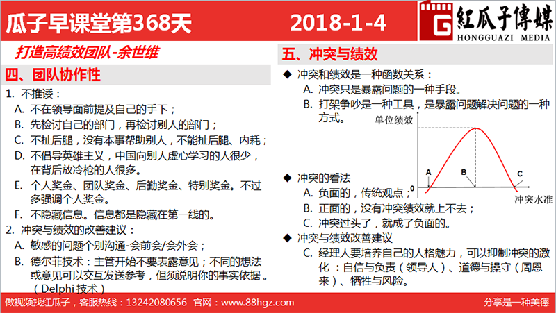 經理人要培養自己的人格魅力,可以抑制沖突的激化:自信與負責(領導人)、道德與操守(周恩來)、犧牲與風險。