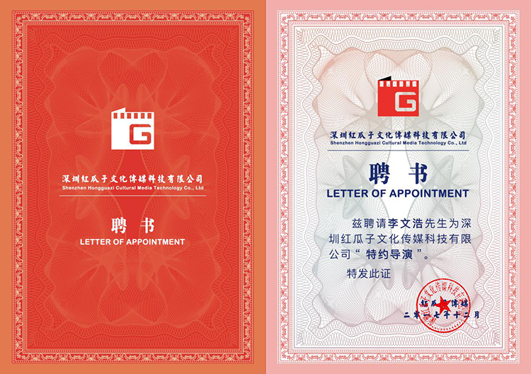 2018年01月09日,深圳紅瓜子傳媒科技有限公司聘請原央視總導演李文浩為特約導演。紅瓜子傳媒總經理楊順林在公司多功能廳給李文浩導演頒發了聘書。