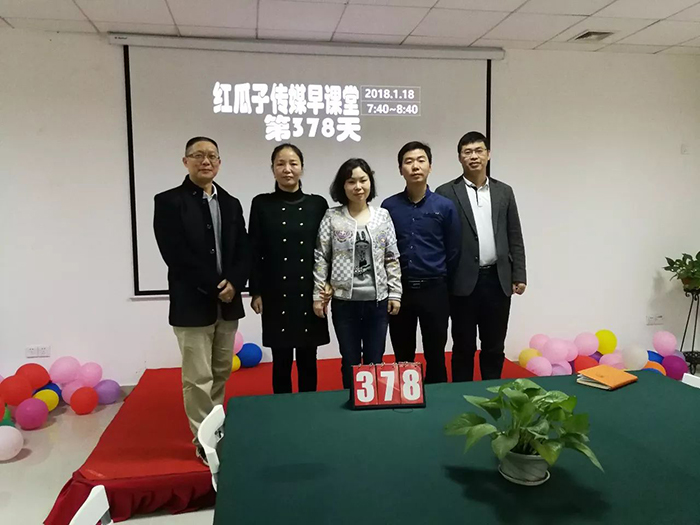 7、拍照合影留念;班長負責編輯合影背景文字(紅瓜子早課堂第xx期),收集早課堂記錄照片并分享到紅瓜子傳媒微信群