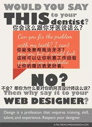 即使你認為到嘴的鴨子不能飛了,你也要明確正式的合作關系,以及前期合作的具體費用,當然支付時間可以商量。領導的臭脾氣都是下屬慣出來的,設計在售前是一個心理博弈的過程,你的高姿態會給你帶來真正的尊重,從商務上來看,被騙得最慘的就是先給貨后結算的,難道不是么?一個提案如果在客戶看來沒有任何成本可言,也就降低了他的重視程度和評價尺度,你的設計在無形中已經被貶值了。事實是,你的免費提案并不會讓你的作品質量和合作機會等到提升。不少設計師礙于面子,覺得完全拒人于千里之外也是不好的,因此對一些“看上去”價值含量較低的工作就采取先嘗后買的態度。你錯了,抓緊機會吃免費的午餐是所有不正規的客戶的慣用伎倆。