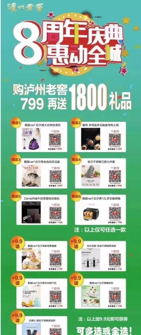安徽淮安瀘州老窖8周年慶典,買買買,+9.9元任性送,客戶想不到的驚喜,讓愛酒的朋友根本停不下來,三天輕松成交30多萬。