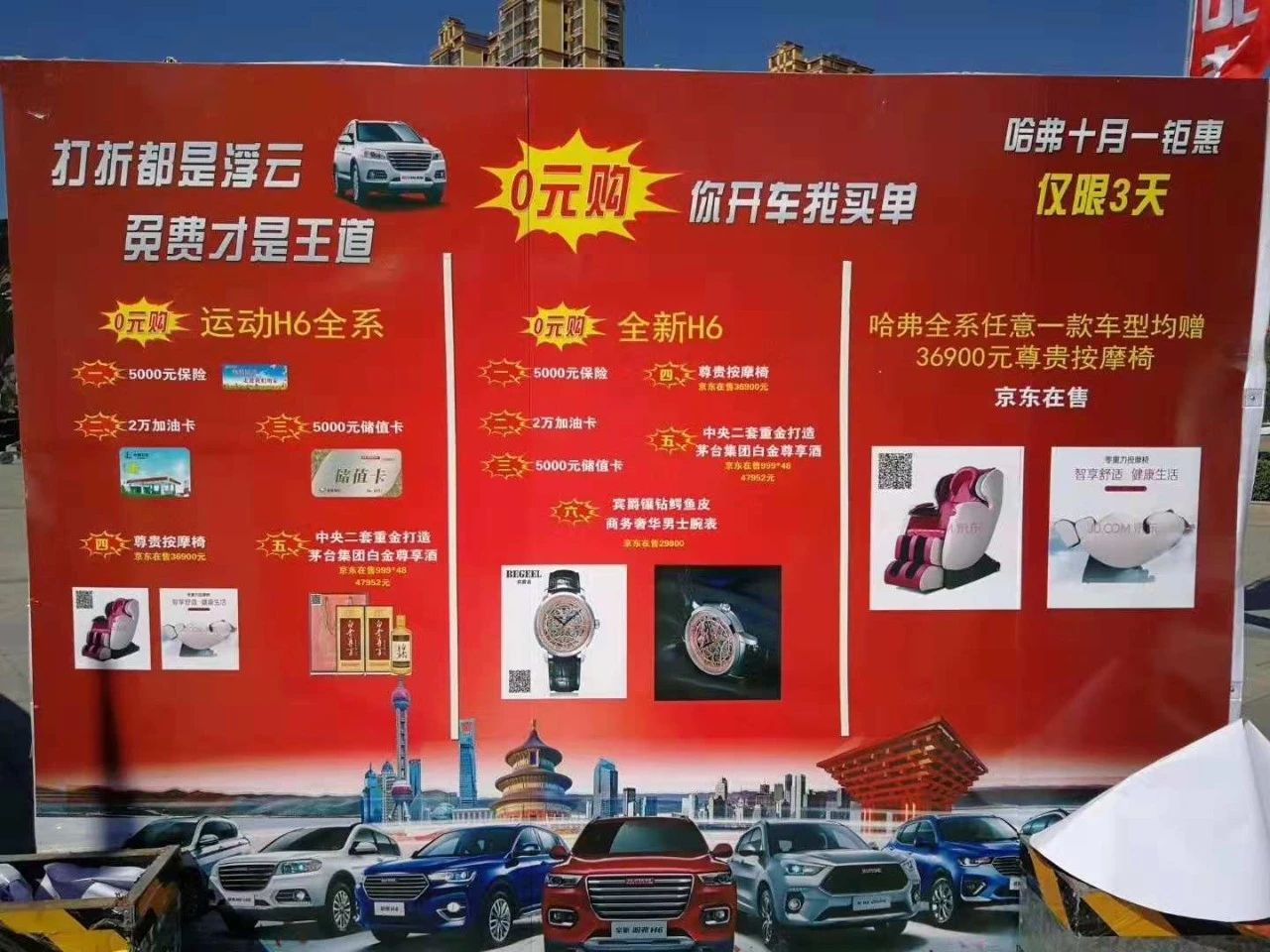 A)購11.3萬車送:20000元加油卡+5000元保險+5000元保養卡+36900元頭等艙按摩椅+47952元茅臺白金酒廠出品白金尊享貴賓酒(8箱)。