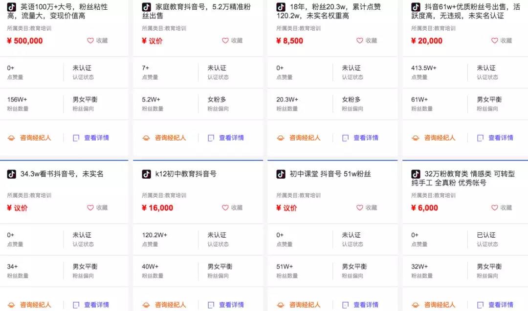 交易平臺(tái)上的部分抖音號(hào)標(biāo)價(jià)