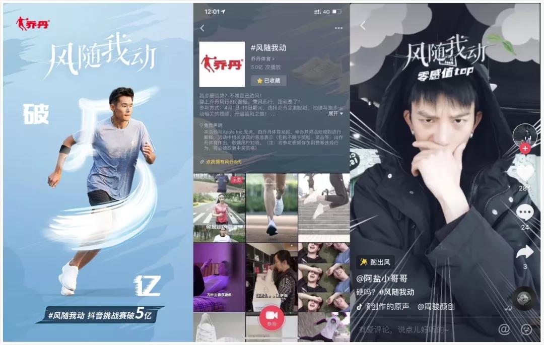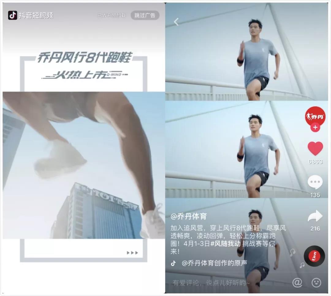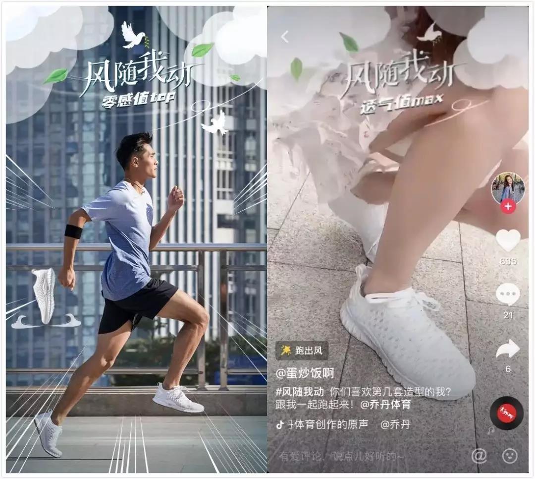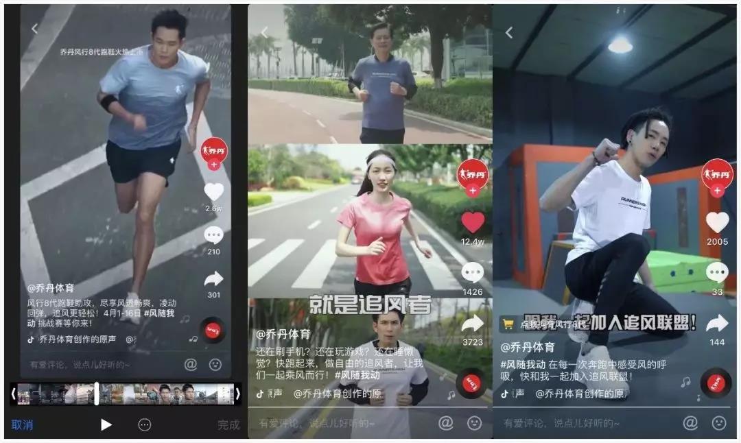 為此,喬丹從“跑步人群”的洞察出發,在抖音平臺上發起一場“追風”挑戰。借助抖音平臺多種營銷玩法,和消費者進行深度互動,成功打造超級新品。