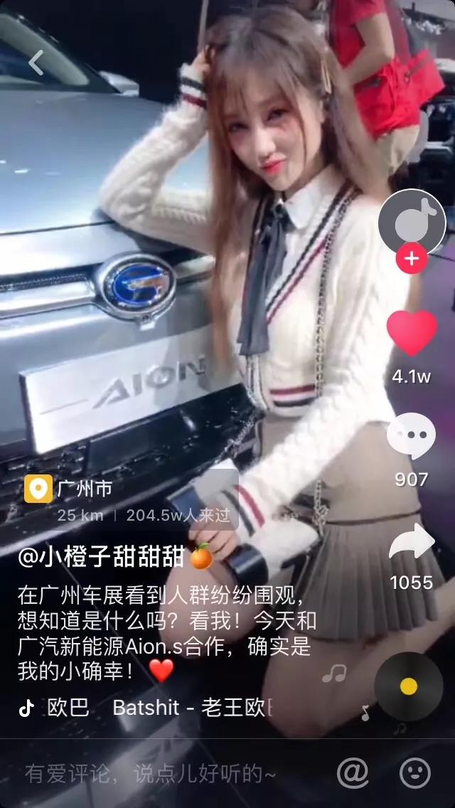 雖然在廣州車展前,Aion S就已收獲了大批粉絲,但在廣州車展期間,廣汽新能源仍順勢而為,利用抖音KOL到展臺打卡Aion S、邀請外國人挑戰(zhàn)“Aion”發(fā)音等玩法,借勢引爆Aion S關(guān)注度。眾多抖音網(wǎng)紅到廣汽新能源展臺上打卡與Aion S互動,使Aion S獲得了持久的話題熱度,持續(xù)“收割”新粉,其中一條視頻更是登上了抖音閱讀量超過4000萬次的“2018廣州車展”話題的第二名,讓刷到此話題的用戶們輕而易舉地看到Aion S的宣傳視頻,迅速為新車擴(kuò)大知名度。