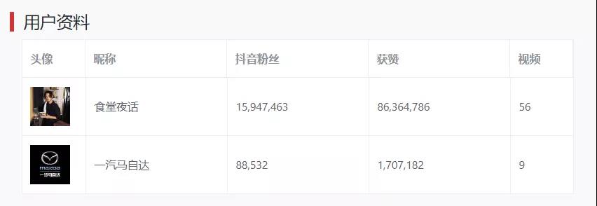 為了直觀體現(xiàn)“一汽馬自達”賬號質(zhì)量,我們拿出抖音汽車賬號中比較出名的四個賬號寶馬中國,奧迪,一汽大眾,一汽豐田來和一汽馬自達做數(shù)據(jù)對比。
