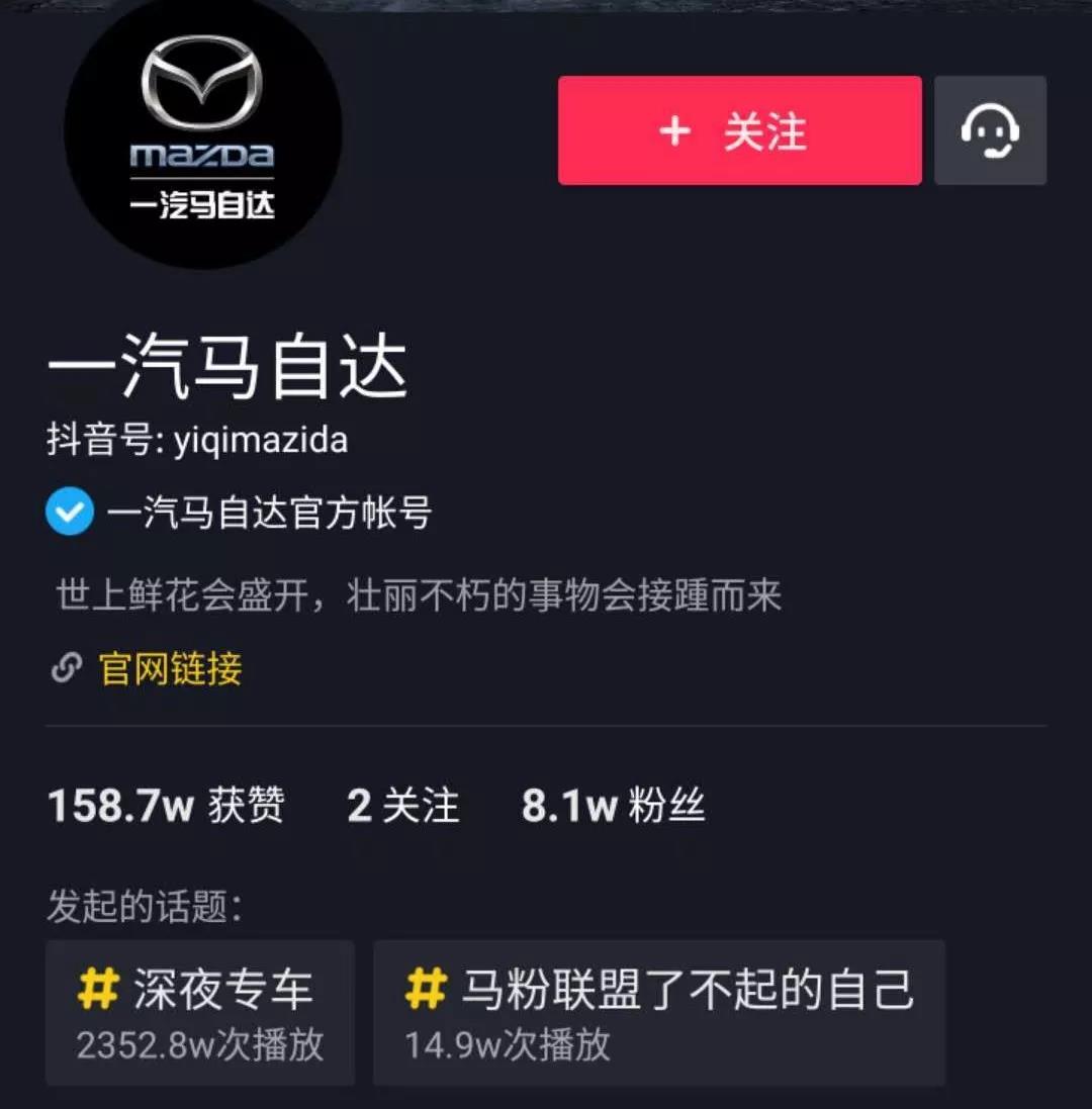 一個制作精良,潘粵明助陣的藍V抖音號正式出道——“一汽馬自達”