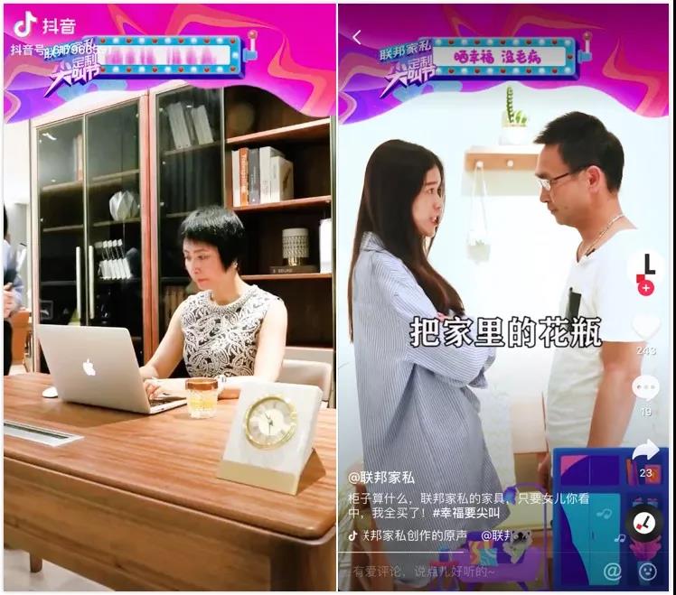 幸福源自生活日常,聯(lián)邦家私基于這樣的社會(huì)洞察以及對(duì)消費(fèi)人群心理的準(zhǔn)確把握,拍攝多條官方創(chuàng)意視頻、達(dá)人創(chuàng)意視頻。針對(duì)情侶、白領(lǐng)、孩童等不同人群特征,深挖其生活細(xì)節(jié)并予以戲劇化的故事演繹,將聯(lián)邦家私“打破焦慮、擊穿平淡”的核心品牌理念傳遞給圈層用戶。