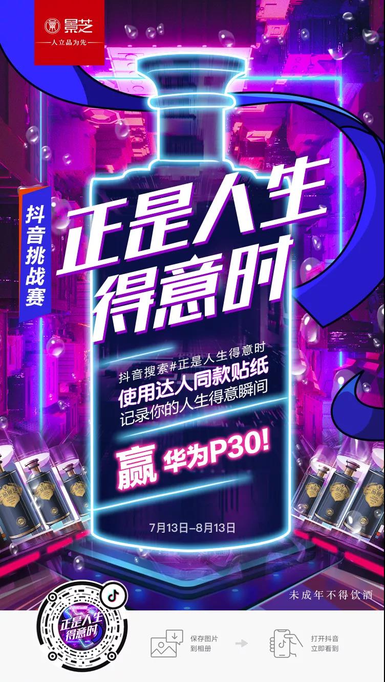 然而,近年來,隨著競爭的日益激烈,酒行業擴張速度遠超實際消費需求。供過于求的市場競爭下,傳統營銷策略再也無法為酒類品牌提供穩定市場份額。因此,新營銷時代下,不懂得如何迎合消費者偏好、不知道如何實現線上用戶市場增量,已成為懸在白酒企業頭上的達摩克利斯之劍。線下地區壟斷銷售境況一時難以打破,酒類品牌亟需線上消費的動力加持。那么該如何緊抓消費者、培養線上用戶品牌黏度?基于短視頻APP移動用戶覆蓋廣滲透高的特性,白酒品牌景芝酒業將頭部平臺抖音擇為其線上營銷的陣地,借此開辟營銷新渠道。景芝酒業在抖音發起#正是人生得意時#區域互動賽,聚焦山東地區,借助貼紙互動、達人視頻等元素,一舉將“正是人生得意時,喝一品景芝”的核心理念傳遞給目標受眾,為白酒行業示范了一次創新營銷的正確打開方式。截止日前,挑戰賽播放量已達4.7億,互動量1047萬+。