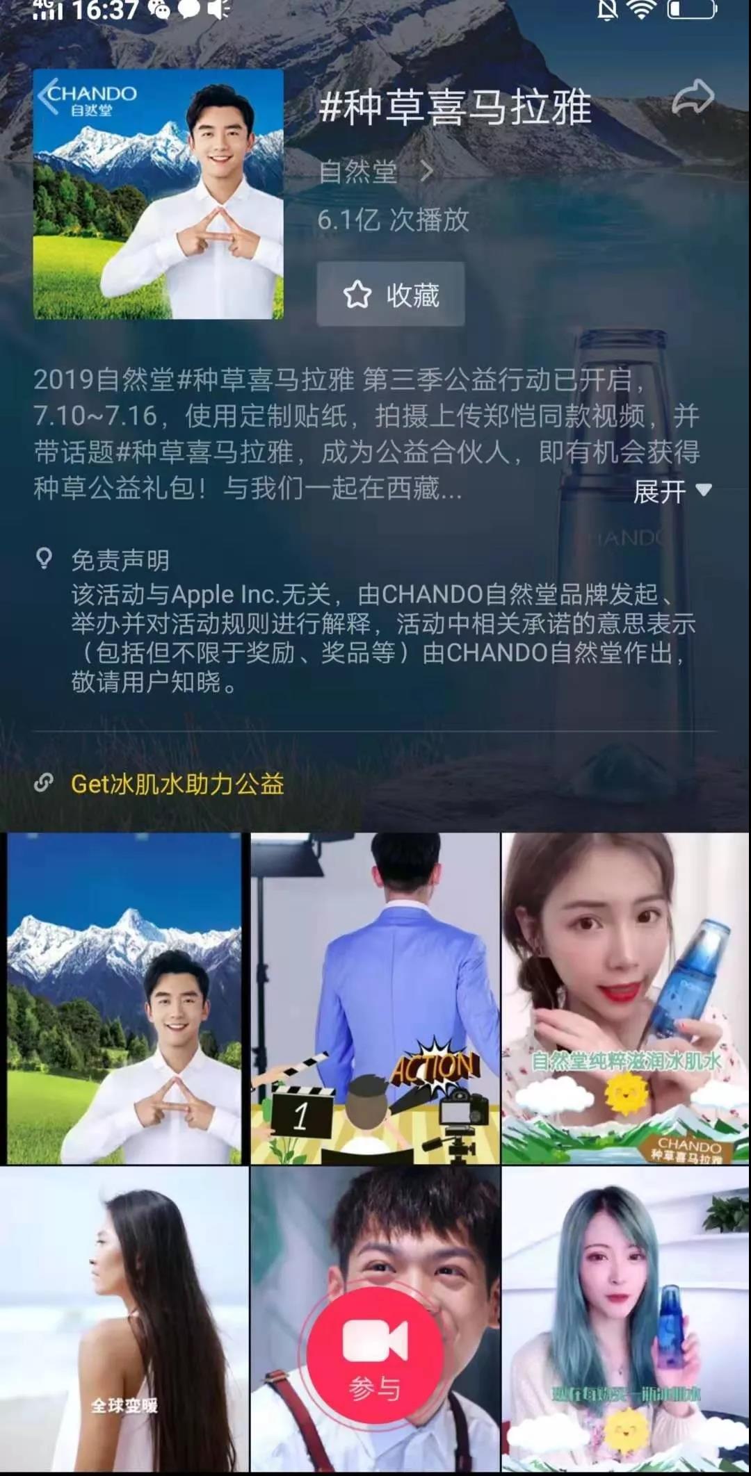 “種草喜馬拉雅”是自然堂在2017年發起的,至今已形成品牌的一個專屬IP。在2019年,自然堂與抖音商業化進合作,將“種草喜馬拉雅”的召集令從明星到達人,再到萬千消費者,層層傳遞,截至目前已收割6.1億次播放,趣味貼紙獲得21.4萬使用量,吸引23.7萬人參與,成功在全網掀起了一場保護大自然的公益活動,同時也將品牌帶到了新的高度。