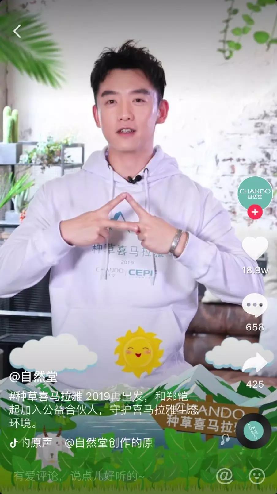 年輕能量為“種草喜馬拉雅”IP帶來了新的增長動力,在IP化的第三年,自然堂與抖音商業化展開合作,以年輕人的語調打造了#種草喜馬拉雅#挑戰賽,并將鄭愷等明星及抖音達人作為傳播的能量源,激發起年輕人做公益的文化潮流,進一步將造“種草喜馬拉雅”IP打造成了品牌公益icon。