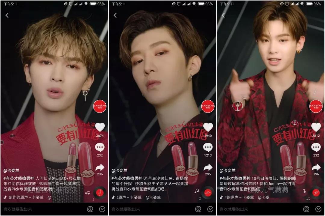 卡姿蘭Pick樂華七子為小紅唇站臺,正是看中樂華七子粉絲高昂的參與熱情。明星站臺+粉絲效應(yīng)加持,卡姿蘭小紅唇在抖音引起了種草浪潮。