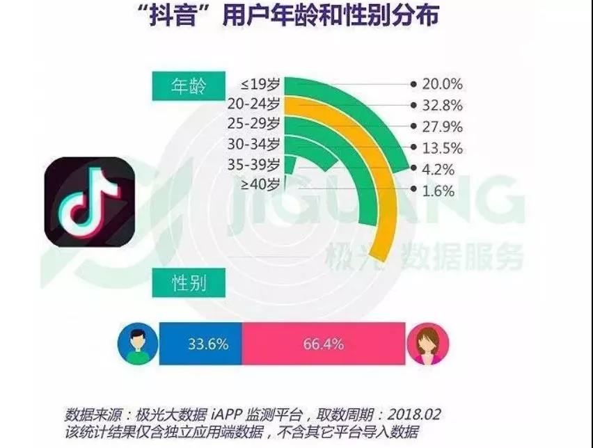據(jù)官方數(shù)據(jù)顯示抖音的用戶中,女性占比(66.5%)顯著高于男性(33.6%),24歲以下的用戶占到了52.8%,也就是說,抖音是一個(gè)年輕女性占主導(dǎo)地位的平臺(tái)。