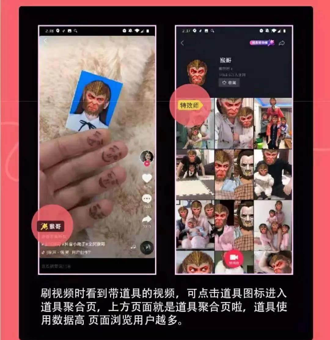 好消息是,抖音剛出了特效漲粉功能。現在每款帶道具的視頻中,會生成一個“道具聚合頁”。用戶點進去,可看到所有使用這款道具的視頻。特效師的本人視頻,會被排在第一位。不過因為剛發布,漲粉效果還未知。