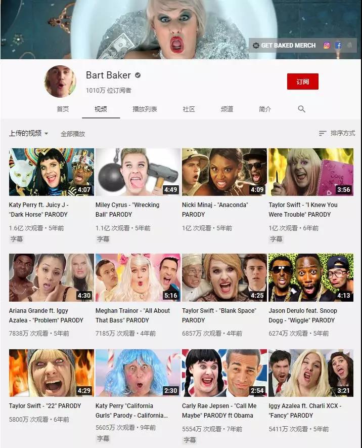 更何況,這是一個已經(jīng)在YouTube耕耘超過5年之久,創(chuàng)作了約300個5分鐘以上長視頻的資深紅人,模仿水果姐Katy Perry的視頻播放量破億。夸張的表現(xiàn)力是他特色,“我覺得無論是和中國人還是外國人對比,他的表現(xiàn)力都是數(shù)一數(shù)二的強(qiáng)”,經(jīng)紀(jì)人Btai告訴我。