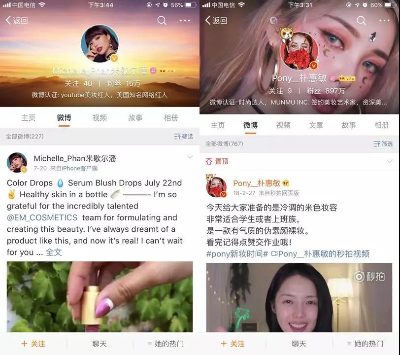Pony在微博開設(shè)賬號的同一年,更早成名的Michelle_Phan和YUME美妝合作,開了微博賬號,但從文案到視頻再到內(nèi)容,沒有進(jìn)行任何本地化,運營3年,粉絲尚未突破20萬。